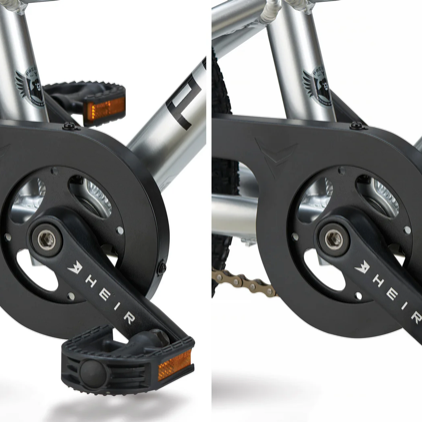Transmisión monomarcha HEIR con plato de 18 dientes y piñón libre de 10 dientes, para mayor simplicidad y eficiencia