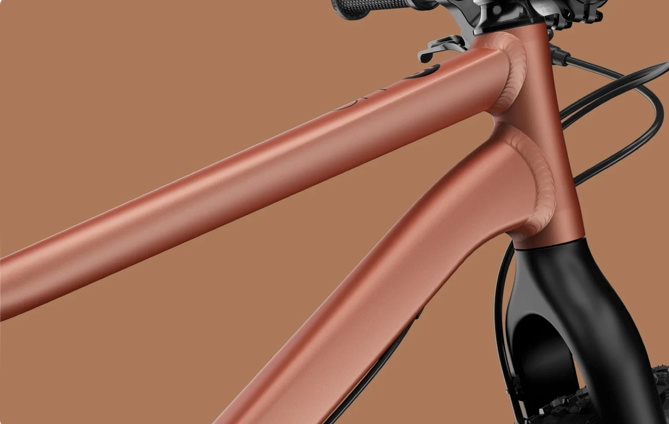 Aluminio ligero de alta calidad 6061-T6 con tubos conificados e hidroformados. Tubo superior bajo de fácil acceso para ayudar a desmontar. Distancia entre ejes larga y centro de gravedad bajo para ayudar al equilibrio. |