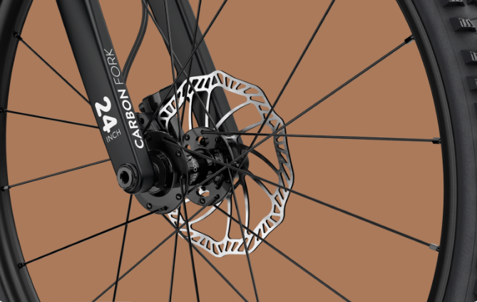 Frenos de disco hidráulicos de Promax. Diámetro del rotor delantero / trasero 160/160 mm. Palancas de freno ergonómicas diseñadas para las manos de un niño. |